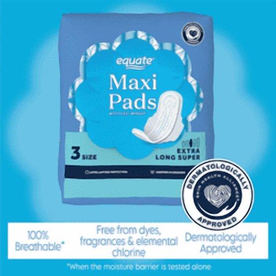 - Equate Maxi Pads with Wings, Unscented, Super Absorbency, Size 3 (26 Count)