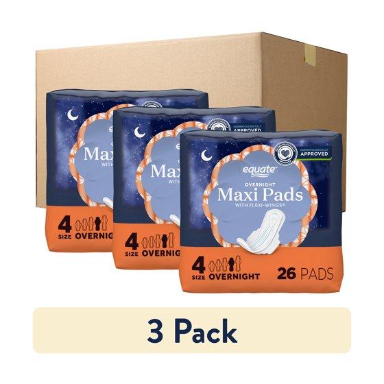 - Equate Overnight Maxi Pads with Flexi-Wings, Unscented, Size 4, 26 Count