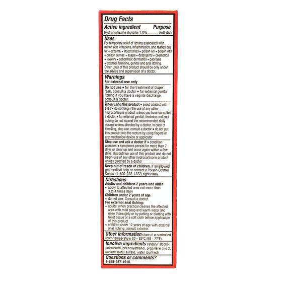 Active Ingredient: Hydrocortisone Acetate 1.0% (Anti-itch), Inactive Ingredients: cetearyl alcohol, petrolatum, phenoxyetllanol, propylene glycol, sodium lauryl sulfate, water (purified)