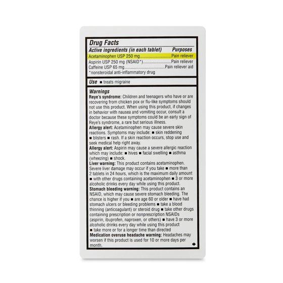 - Compare to Excedrin Migraine