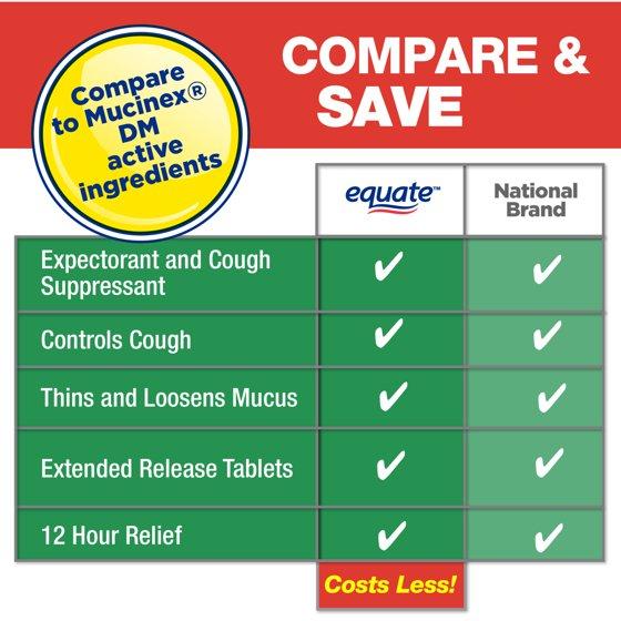 Equate Mucus Relief DM, Extended-Release Tablets, Chest Congestion Relief and Cough Suppressant