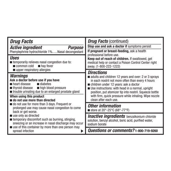- Contains 1% Phenylephrine Hydrochloride for fast nasal congestion relief