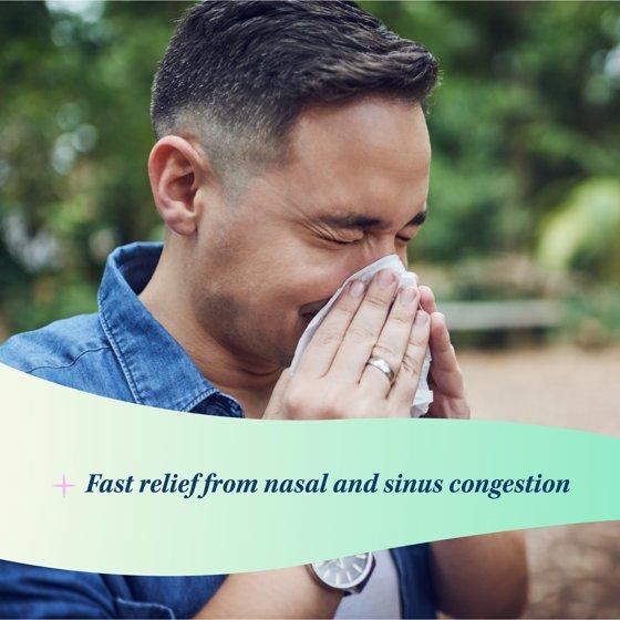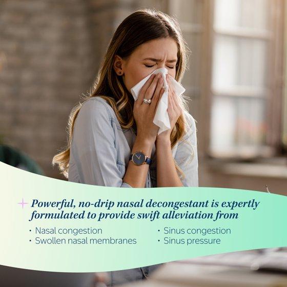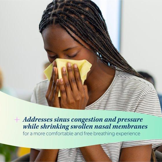 - Shrinks swollen nasal membranes so you can breathe more freely.