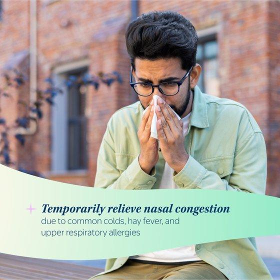 - Temporarily relieves nasal congestion from common cold, hay fever, and upper respiratory allergies.