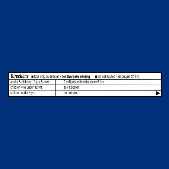 Active Ingredients: In Each Softgel Acetaminophen (325 mg), Dextromethorphan HBr (15 mg), Doxylamine Succinate (6.25 mg). Purpose: Pain Reliever/Fever Reducer., Cough Suppressant., Antihistamine. Inactive Ingredients: D&C Yellow 10, FD&C Blue 1, Gelatin, Glycerin, Polyethylene Glycol, Povidone, Propylene Glycol, Purified Water, Sorbitol Sorbitan Solution, and White Ink..