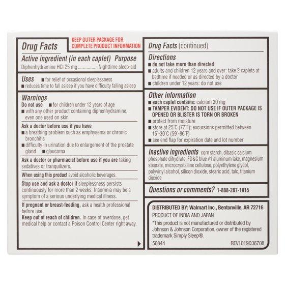 - Active ingredient (in each caplet): Diphenhydramine Hydrochloride 25 mg (nighttime sleep-aid)