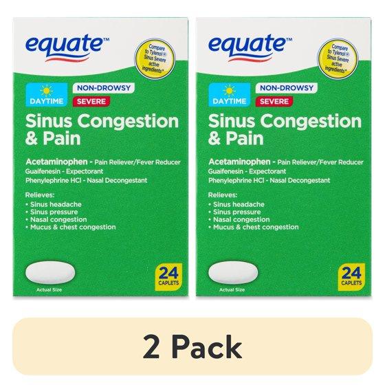 (2 pack) Equate Non-Drowsy Severe Sinus Congestion & Pain Caplets, 24 Count