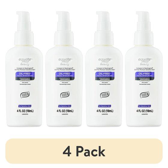 - Equate Beauty Oil-Free Facial Moisturizer for Sensitive Skin, 4 fl oz: For sensitive skin Oil and fragrance-free Enriched with humectants and emollients Hypoallergenic Not tested on animals Compare to Neutrogena Oil-Free Moisture Sensitive Skin