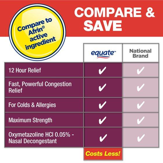 - Active Ingredient: Compare to the active ingredient of Afrin Original; this nasal decongestant contains oxymetazoline hydrochloride 0.05 percent