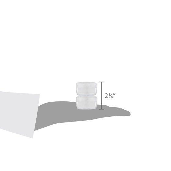 Equate 2 pack plastic travel jar is an all purpose jar that you can use to contain and separate small items such as crafts, jewelry, powders, and creams. Fill with your favorite product or item and save the space of a full size container. Clear jar base allows for easy identification of contents. Threaded closure for securing contents. Perfect for travel, home, school, or beauty use. Available in five colors for convenience.