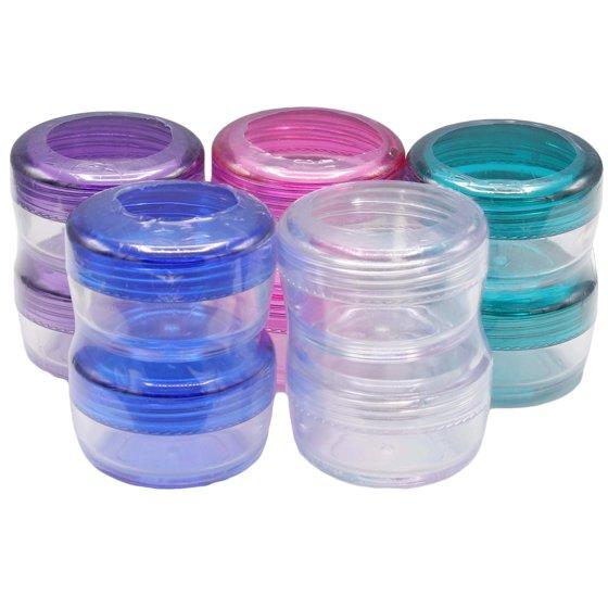 Equate 2 pack plastic travel jar is an all purpose jar that you can use to contain and separate small items such as crafts, jewelry, powders, and creams. Fill with your favorite product or item and save the space of a full size container. Clear jar base allows for easy identification of contents. Threaded closure for securing contents. Perfect for travel, home, school, or beauty use. Available in five colors for convenience.