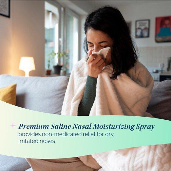 Relieve and hydrate dry, irritated nasal passages with Equate Premium Saline Nasal Spray. Made with Sodium Chloride 0.65% and Benzyl Alcohol and Benzalkonium Chloride as preservatives, this non-medicated formula instantly soothes dryness caused by allergies, sinus issues, or cold medications. Safe for daily use, this gluten-free spray soothes dry nasal passages. For dry nasal membranes, squeeze twice in each nostril as needed. Upright delivers a spray; horizontally a stream; upside down a drop. This moisturizing nasal spray offers trusted relief to keep you comfortable.
