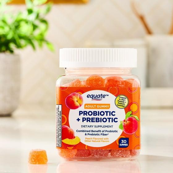 Equate Probiotic + Prebiotic Dietary Supplement for Adults, Peach, 30 Gummies, Compare to Olly Prebiotic + Probiotic Gummies