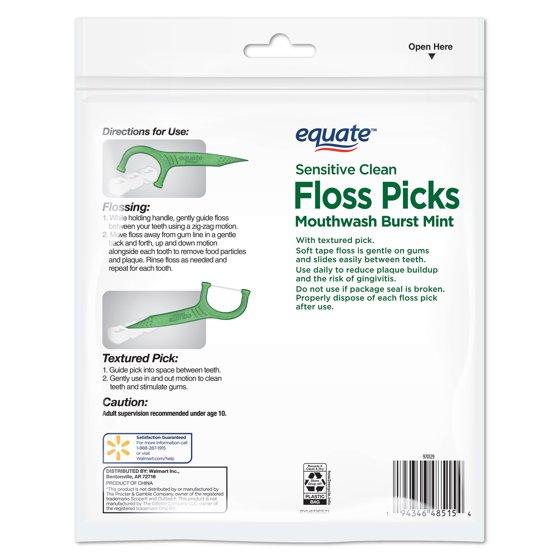 Equate Sensitive Clean Flossers, Mouthwash Burst Mint, Soft Tape Floss, 300 Count