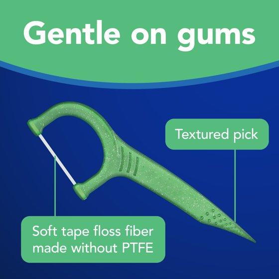- Soft tape floss is gentle on gums and slides easily between teeth