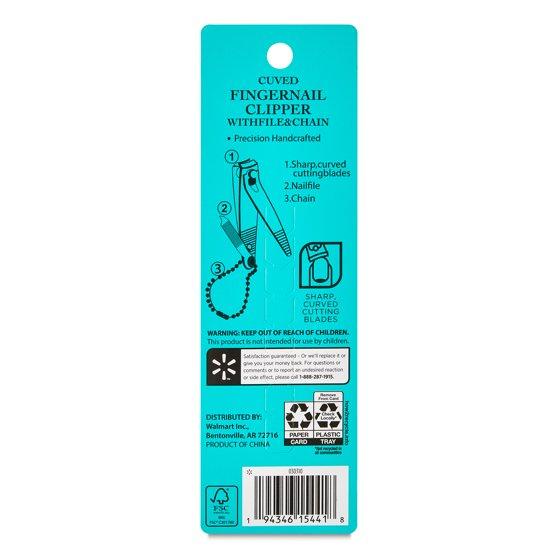 Equate Stainless Steel Curved Fingernail Clipper with File and Chain, 1 Count