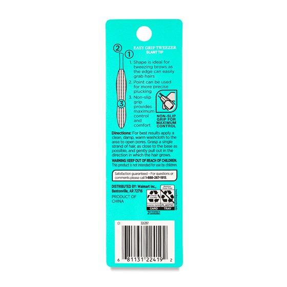 The Equate Easy Grip Slant Tip Tweezers are expertly designed for all your tweezing needs. The unique slant-tip shape is perfect for shaping and maintaining brows, as it can easily grip and remove hairs. The pointed tip is an added advantage for more precise plucking, ensuring that you can remove even the most stubborn or fine hairs. These tweezers are not only designed for functionality but also for comfort and control. The non-slip grip ensures maximum control while tweezing and provides comfortable usage even during long grooming sessions. Achieve meticulous results with Equate Easy Grip Slant Tip Tweezers.
