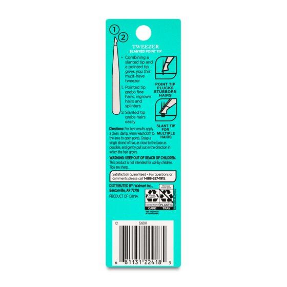 Elevate your beauty regime with these indispensable Equate Stainless Steel Slanted and Pointed Tip Tweezers. Expertly engineered, the precision point is ideal for a multitude of uses. Its fine grip effortlessly captures delicate hairs, making these tweezers your go-to for eyebrow shaping or removing unwanted facial hair. Encountered a pesky splinter? These versatile tweezers are also your solution, employing the pointed tip to gently pry it out. For an everyday beauty tool that effortlessly combines functionality and elegance, choose the Equate Stainless Steel Slanted and Pointed Tip Tweezers.