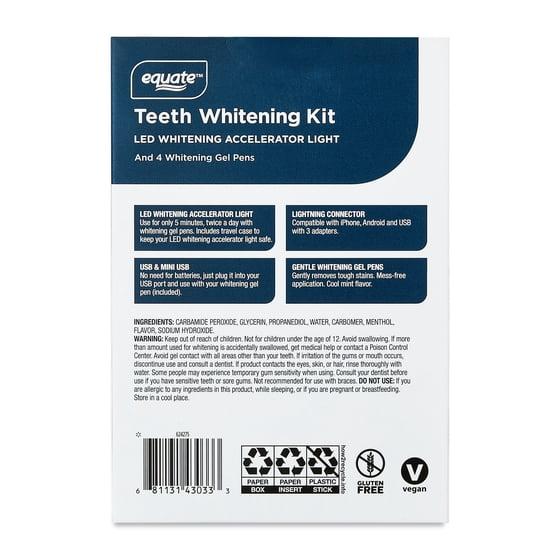 - Equate Premium Teeth Whitening Kit, 4 Gel Pens and 1 LED Light, Unflavored