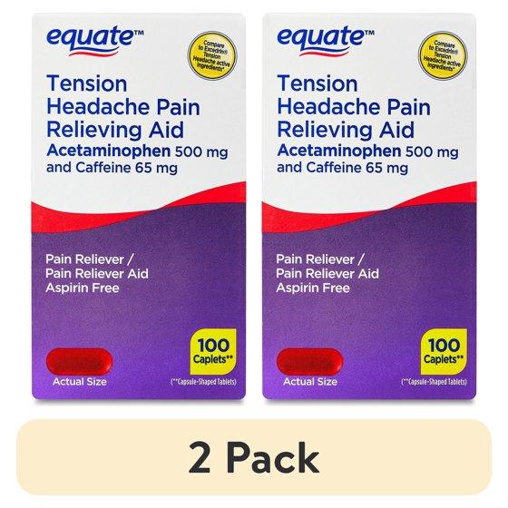 (2 pack) Equate Tension Headache Pain Relieving Aid Acetaminophen and Caffeine Caplets, 100 Count, Compare to Excedrin® Tension Headache Active Ingredients