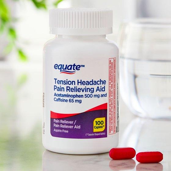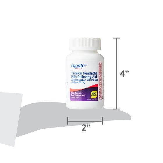 Equate Tension Headache Pain Reliever Caplets are a fast-acting, aspirin-free alternative that provides head, neck and shoulder pain relief quickly. Combining acetaminophen with caffeine, this headache medicine delivers an effective formula with both a pain reliever and an amplifier to treat the headaches associated with neck and shoulder pain caused by the tension and stress. These Equate Tension Headache Pain Reliever caplets relieve minor pain caused by tension headaches and muscular aches. Get fast relief from your headache, neck and shoulder pain with this aspirin free pain reliever.
