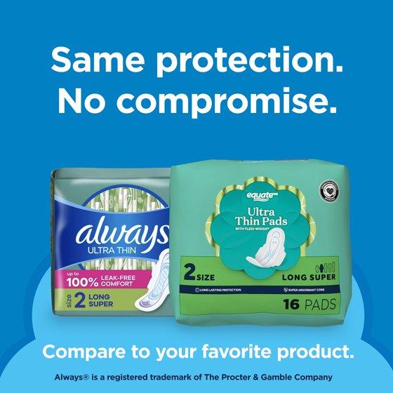 - Equate Long Ultra Thin Pads with Flexi-Wings, Unscented, Super, Size 2 (16 Count)