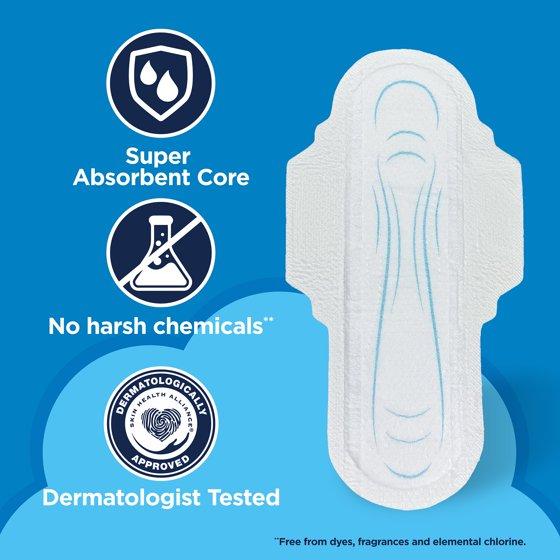 Equate Ultra-Thin Pads with Flexi-Wings have a super absorbent core to help lock away wetness. These Ultra Thin pads offer long lasting protection to help you feel confident day and night. Equate Ultra Thin pads are dermatologically approved by the Skin Health Alliance for skin health. These ultra-thin pads with wings come individually wrapped for convenient and discreet access in your purse, gym bag, or cosmetic bag. Equate Ultra Thin pads are available in sizes 1-5 to fit your flow. Size 4 Ultra Thin pads have 45% greater back coverage compared to size 1 for more protection at night. Making the right health decisions can be challenging. With a complete range of products and simple solutions, Equate allows you to take care of your family with confidence.