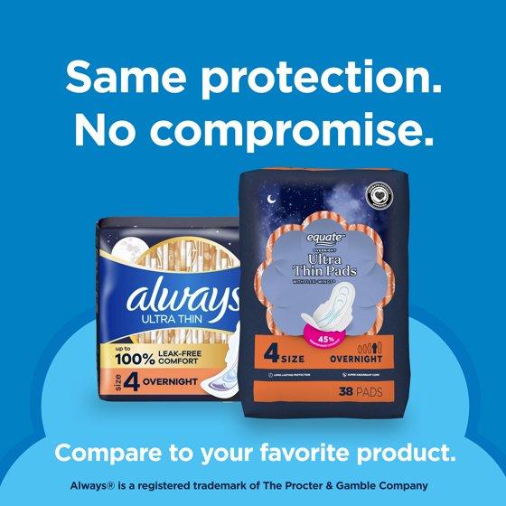 Equate Ultra Thin Pads with Wings, Size 4, Overnight Absorbency, Compare to Always (114 Count)