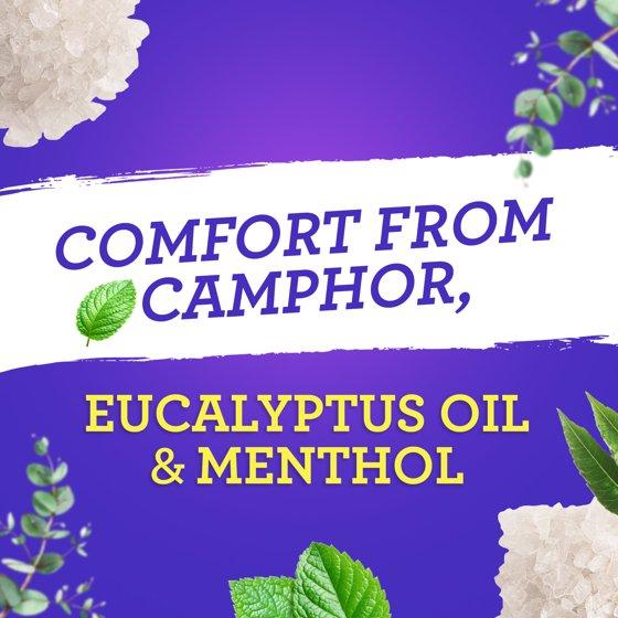 - Ingredients: Camphor (4.8%): Cough suppressant and topical analgesic, Eucalyptus Oil (1.2%): Cough suppressant, Menthol (2.6%): Cough suppressant and topical analgesic