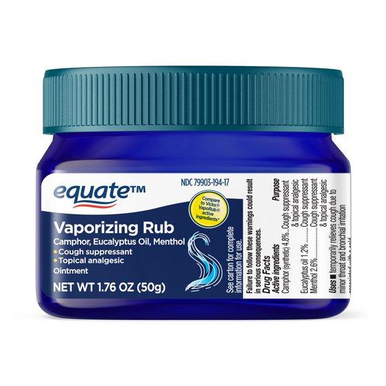 - Equate Vaporizing Rub Topical Analgesic and Cough Suppressant Ointment Soothing Menthol Vapors, 1.76 oz