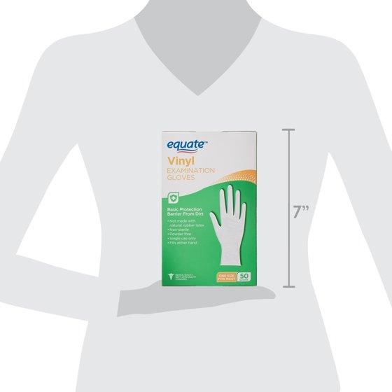 Equate Vinyl Examination Gloves are an all-purpose, highly durable set of gloves that provides you with excellent grip and finger movement. These high quality gloves are durable, long-lasting, and one size fits most. They are powder-free, single use only and made from vinyl, ensuring no allergic reaction to people sensitive to latex. While these gloves are primarily meant for clinical procedures and first aid, you can use them for any activity that requires protection for your hand, like baby care, pet care or wall-painting. You can also use these gloves for food preparation especially when cutting peppers and handling raw meat. Equate Vinyl Examination Gloves are designed for quick donning and removal and are an essential addition to your medicine cabinet.