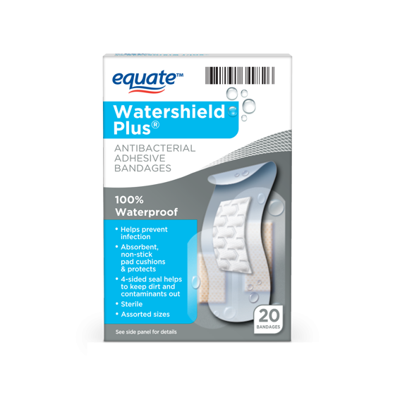 Equate Fabric Antibacterial Clear Watershield 20 Count Bandages - 5 Pack