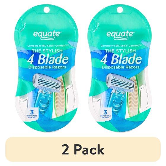 (2 pack) Equate Women's 4-Blade Disposable Razors, Color May Vary (3 Count), Compare to BIC® Soleil® Comfort