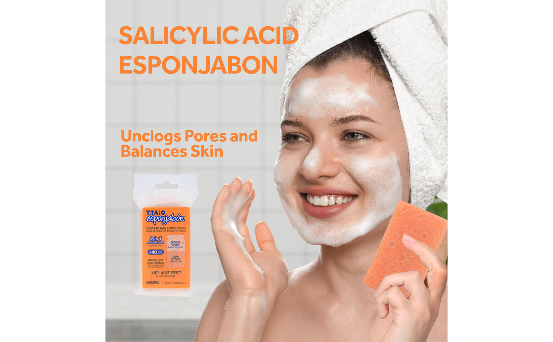 - Satisfy Your Skin Every Day - With Salicylic Acid! Get noticeably clearer and smoother skin with Esponjabon, formulated with pore-clearing salicylic acid, proven to tackle blemishes and enhance skin’s overall look and feel.
