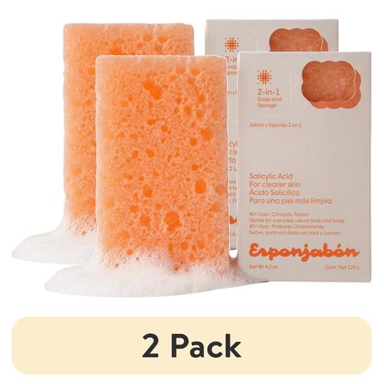 (2 pack) Esponjabon Salicylic Acid Soap Sponge - For Clearer Skin 2-in-1 Soap Sponge - For Face and Body - 4.2 oz