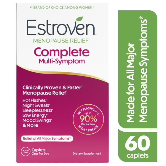 Estroven Menopause Relief Complete Multi-Symptom Daily Supplement, Support for Hot Flashes & Night Sweats, 60 Count