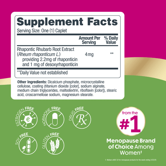 - NATURALLY-SOURCED INGREDIENTS: Contains rhapontic rhubarb, a botanical with a long history of use that has been clinically shown to reduce menopause symptoms and improve quality of life***