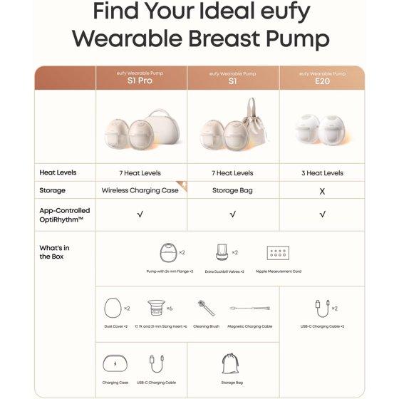 Experience next-level convenience and comfort with the eufy Heated Wearable Breast Pump E20, designed for moms who need efficiency and ease. Featuring innovative HeatFlow™ technology, this slim, hands-free pump quickly warms to 95°F to help prevent clogs and boost your milk output by up to 30%*. Personalize your session effortlessly in the eufy app, choosing from 4 rhythm presets and 3 heat levels while enjoying ultra-quiet, discreet operation at just 46 dB—perfect for in-bra use anywhere. With hospital-grade suction up to 300 mmHg, a gentle 105° ergonomic design, and leakproof, BPA-free construction, the E20 offers both comfort and security. Plus, its accessories are compatible with the S1 and S1 Pro models, making upgrades simple and seamless.*Based on actual usage feedback from over 300 eufy pump users.