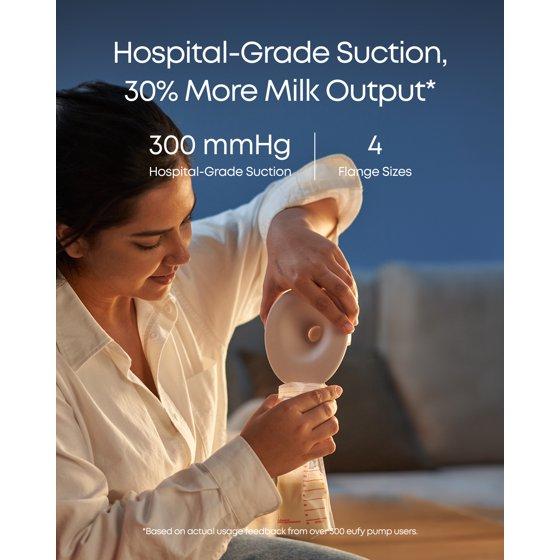 - 30% More Output with Hospital-Grade Suction: Up to 300 mmHg of hospital-grade suction with adjustable intensity and cycle speeds helps maximize your milk flow. Note: All skin-contact parts are made from BPA-free, food-grade materials. For optimal suction, purify all washable parts by boiling or steaming for 5 minutes before first use. Make sure the duckbill valve, flange tunnel, diaphragm, and pump hub are securely sealed.