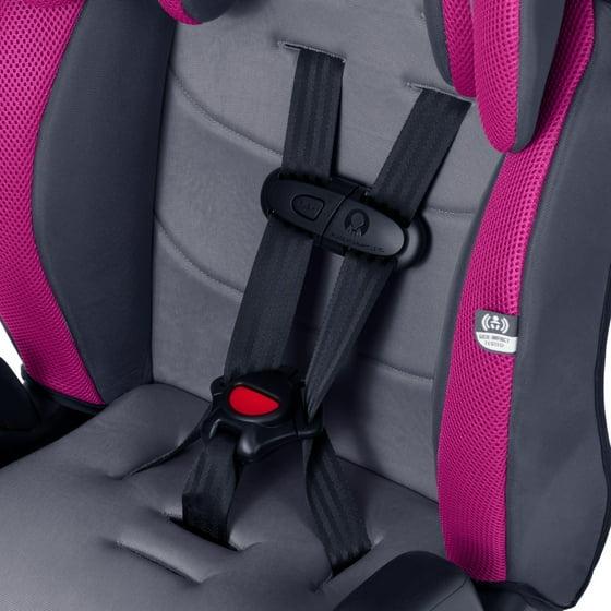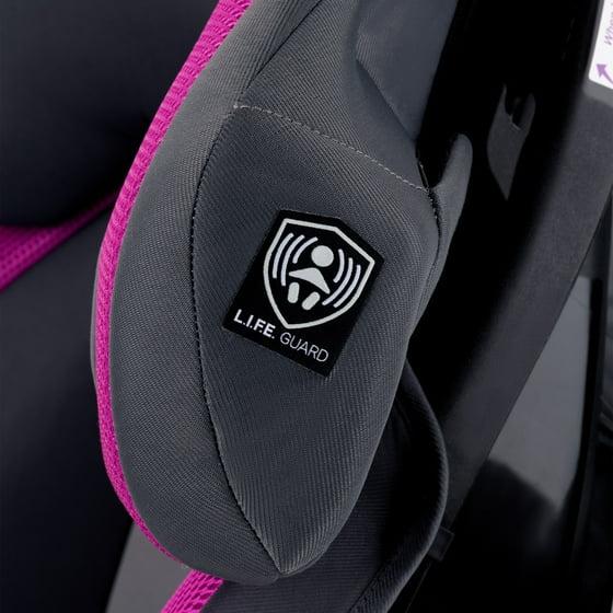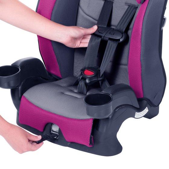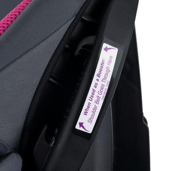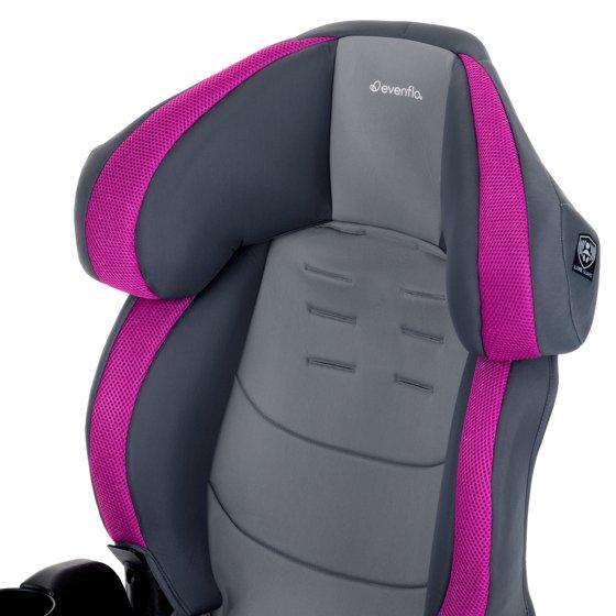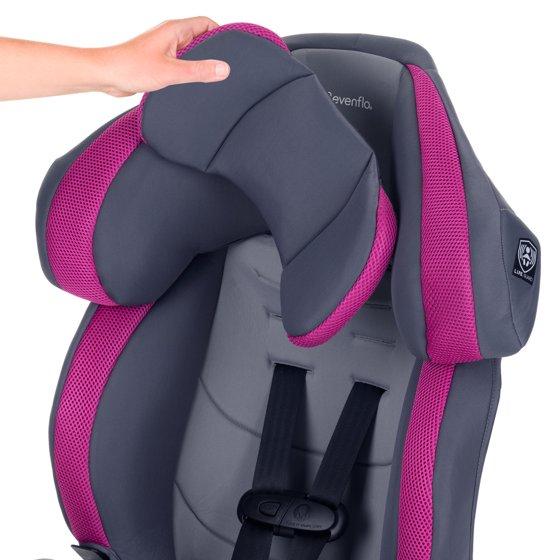 The Evenflo® Chase® Plus 2-in-1 Booster Car Seat converts from a 5-point harness booster for use 30 - 40 lb, to a high-back booster with vehicle seat belt for use up to 100 lb. We’re all about safety, which is why we designed the innovative headrest with RightFit™ exclusive belt path technology. RightFit will auto-adjust the vehicle belt to the correct height ensuring a proper fit.