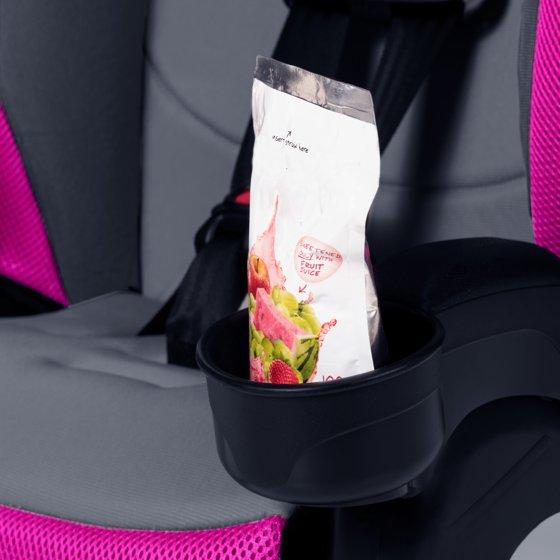 Dual, integrated cup holders keep snacks and drinks close, allowing the driver to stay focused on the road. The comfortable, padded seat is ideal for long or short journeys and is removable and machine-washable for easy cleaning. Great for families on-the-go, this booster is lightweight and equipped with a lower anchor and tether system for easy installation and transfer between multiple vehicles.