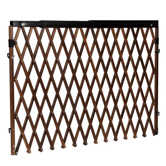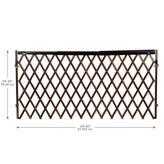 The Evenflo® Expansion Walk-Thru™ Room Divider Baby Gate is ideal for extra-wide openings in your home, such as great rooms or open floor plans. The warm wood and black accents fit seamlessly into the farmhouse look, making this gate part of your home décor. Accommodating a wide range of openings 24" - 60", this gate is a must-have for unique openings that are too wide for doors. The hardware mount attachment is easy to use and installs in minutes. Ideal for high-traffic areas, the gate opens in both directions, and the latch easily works with one hand. A special telescoping safety rail keeps fingers safe from pinching when the gate expands or contracts during use.