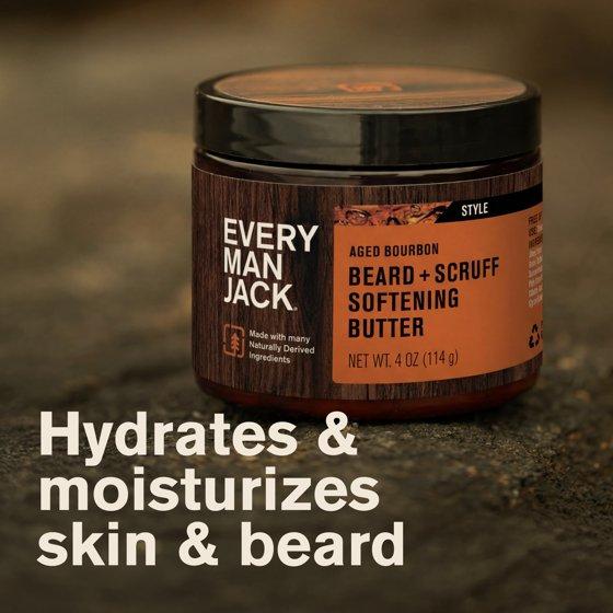 Every Man Jack Aged Bourbon Hydrating Beard + Scruff Softening Butter for Men, Naturally Derived, 4 oz