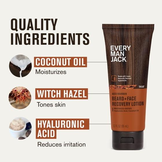 Every Man Jack Aged Bourbon Recovery Beard and Face Lotion for Men, Naturally Derived, 3.2 oz
