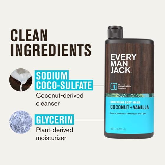 Every Man Jack Coconut + Vanilla Hydrating Body Wash for Men, Naturally Derived, 16.9 fl. oz