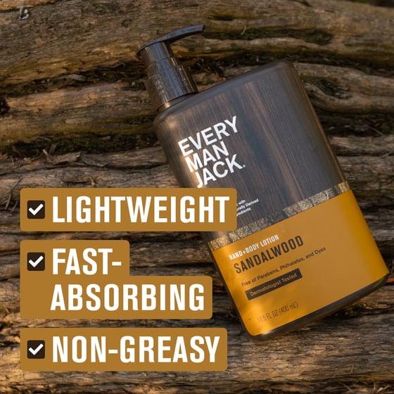 (3 pack) Every Man Jack Mens Sandalwood Hand & Body Lotion for All Skin Types - Dermatologist Tested & Hypoallergenic - Nourish Skin with Lightweight Fast Absorbing Natural Lotion - 13.5oz