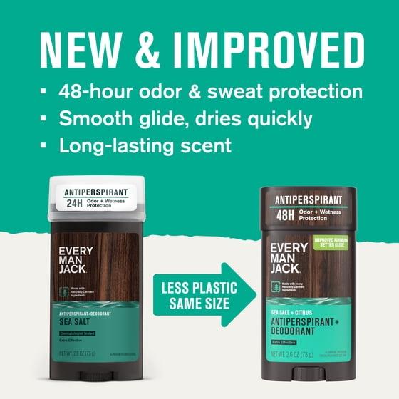 Every Man Jack Men's Sea Salt and Citrus Antiperspirant Deodorant - Long Lasting, Plant-Based, No Harsh Chemicals, 2.6 oz