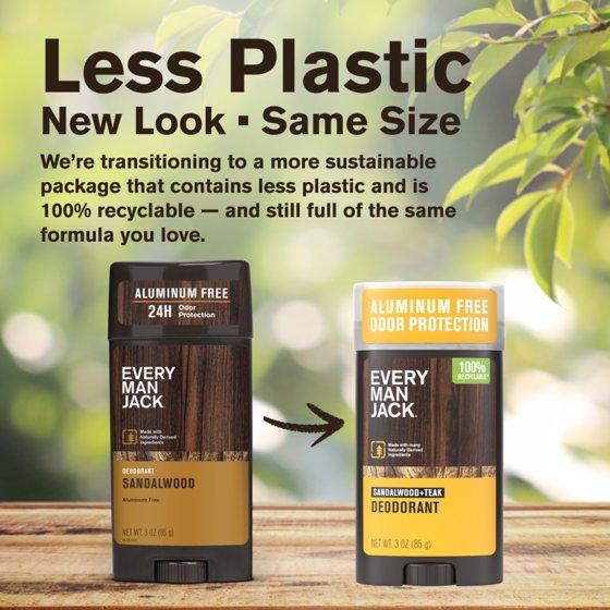 Every Man Jack Sandalwood Teak Aluminum-Free Deodorant for Men, Naturally Derived, 3 oz