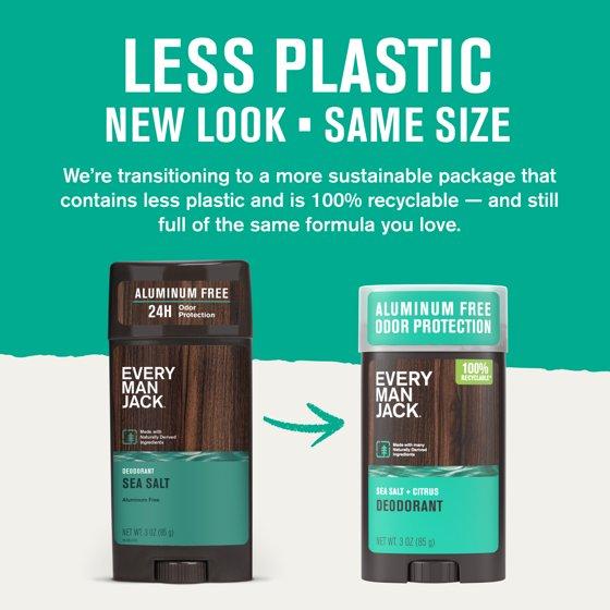 Every Man Jack Sea Salt + Citrus Aluminum-Free Deodorant for Men, Naturally Derived, 3 oz