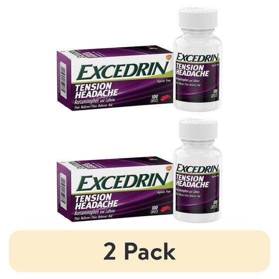 (2 pack) Excedrin Tension Headache Relief Caplets Without Aspirin for Head, Neck and Shoulder Pain Relief - 100 Count